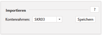 Um einen Kontenrahmen zu importieren, wählen Sie rechts oben die verfügbaren Kontenrahmen SKR03 oder SKR04 aus dem Drop-Down-Menü Kontenrahmen aus und klicken Sie anschließend auf . Der ausgewählte Kontenrahmen wird importiert.