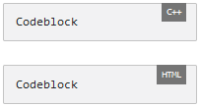 | Verschiedene Angaben zum Codeblock sind möglich, jedoch nur über die Codeblockauswahl einstellbar. Jeweils der zuletzt gewählte wird wieder verwendet. | ` ` `Codeblock | ` ` `Codeblock | ![]() |