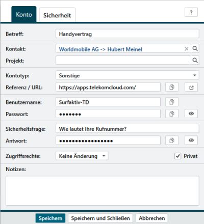 Antwort Hierbei handelt es sich um die Antwort auf die Sicherheitsfrage. Bei Kundenkennwörtern an Hotlines empfehlen wir Ihnen, die Angabe ebenfalls hier zu speichern.