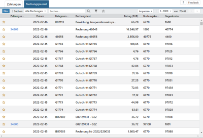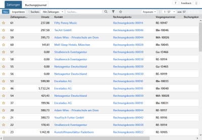Im unteren Bereich der jeweiligen Zahlung finden Sie viele Registerkarten mit weiteren Informationen der Zahlung. Auch diese Ansicht mit der Anzahl und Reihenfolge der Registerkarten kann sich von Ihrer persönlichen Ansicht unterscheiden.