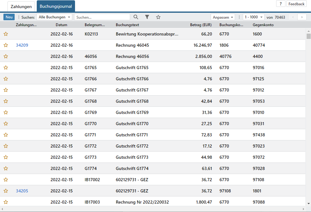 Um in das Modul Buchungen zu gelangen, klicken Sie in der Modulleiste auf und anschließend auf . Daraufhin öffnet sich ein Fenster mit Registerkarten, darunter auch die Registerkarte , die Ihnen einen Überblick gibt.