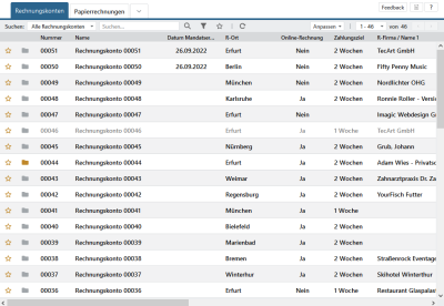 Die Rechnungskonten stellen den Dreh- und Angelpunkt für das Rechnungsmodul dar. Im Rechnungskonto werden u.a. Einträge für Rechnungsadressen und Lieferadressen, Einstellungen von Fristen und Zahlungsarten, sowie eine Übersicht für alle Vorgänge gepflegt. Diese Einträge können in Angeboten, Aufträgen, Verträgen und den Vorgangsarten im Rechnungsmodul verwendet werden. Jeder Kontakt kann dabei mehrere Rechnungskonten mit unterschiedlichen Rechnungsadressen und Lieferadressen, sowie verschiedene Zahlungsbedingungen besitzen.