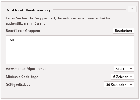 Wurde die 2-Faktor-Authentifizierung als Add-on installiert, steht Ihnen in diesen Systemen ein weiterer Abschnitt für Einstellungen zur Verfügung.
