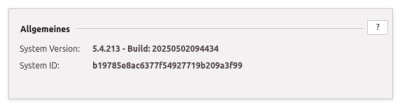 Die System Version gibt die Versionsnummer an, welche sich aus dem Release (z.B. 5.4.213) und ggf. einem Typ (z.B. beta) zusammensetzt. Es folgt die Angabe des Builds. Dessen Nummer gibt den Zeitpunkt der letzten Aktualisierung Ihres Systems an. Die Nummer 20250502094434 bezieht sich auf den 02.05.2025 09:44:34 Uhr.