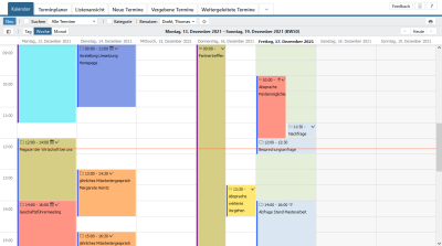 Termine können in verschiedenen Farben und mit unterschiedlicher Symbolik dargestellt werden. Die jeweilige Darstellung ist abhängig von der Zuständigkeit und den gesetzten Optionen.