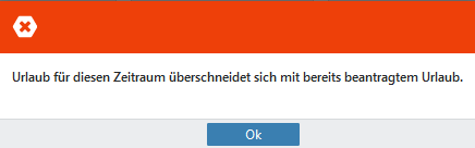Eine Buchung von halben Urlaubstagen über einen längeren Zeitraum ist nicht möglich. Sie können maximal den ersten und letzten Tag als halben Urlaubstag markieren. Handelt es sich nur um einen Tag, ist die Angabe nur in einem Feld erforderlich.