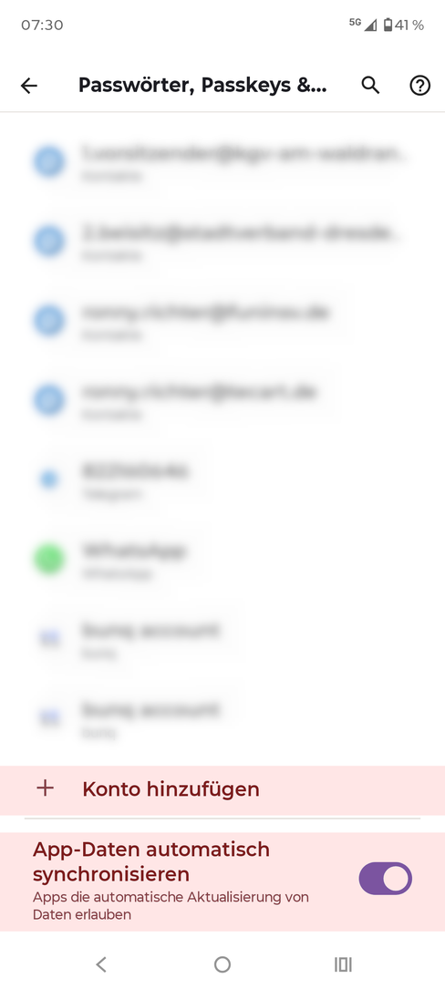 - Synchronisation: alle 15 Minuten