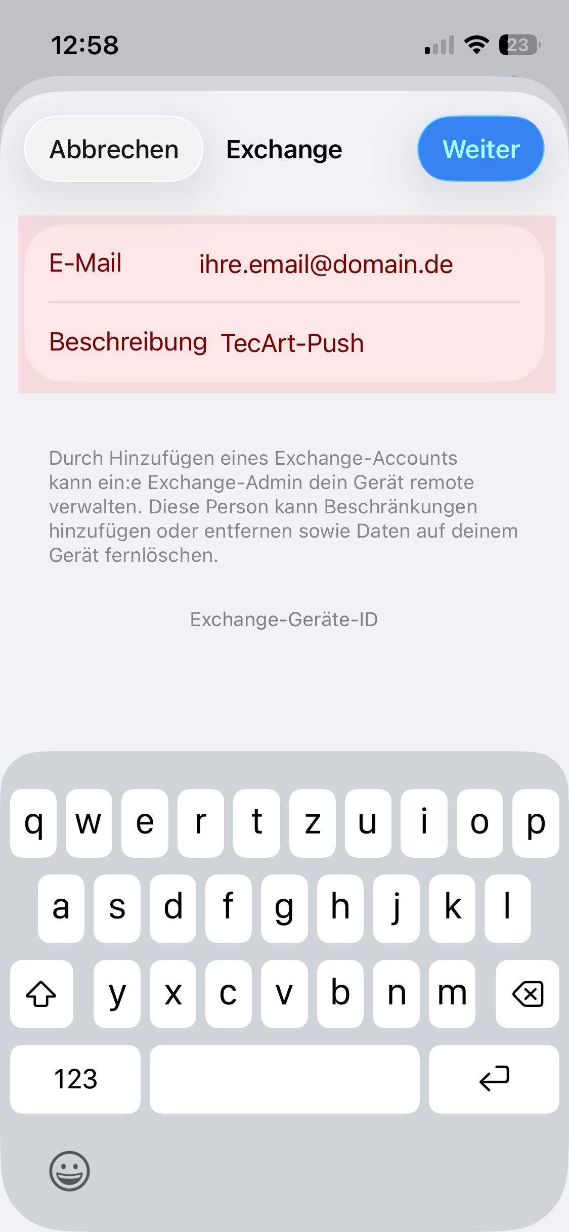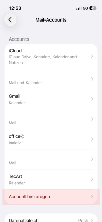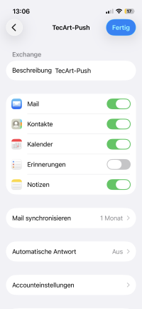 Nach Abschluss des Vorgangs kann es vorkommen, dass der TecArt-Push-Account neu eingerichtet werden muss.