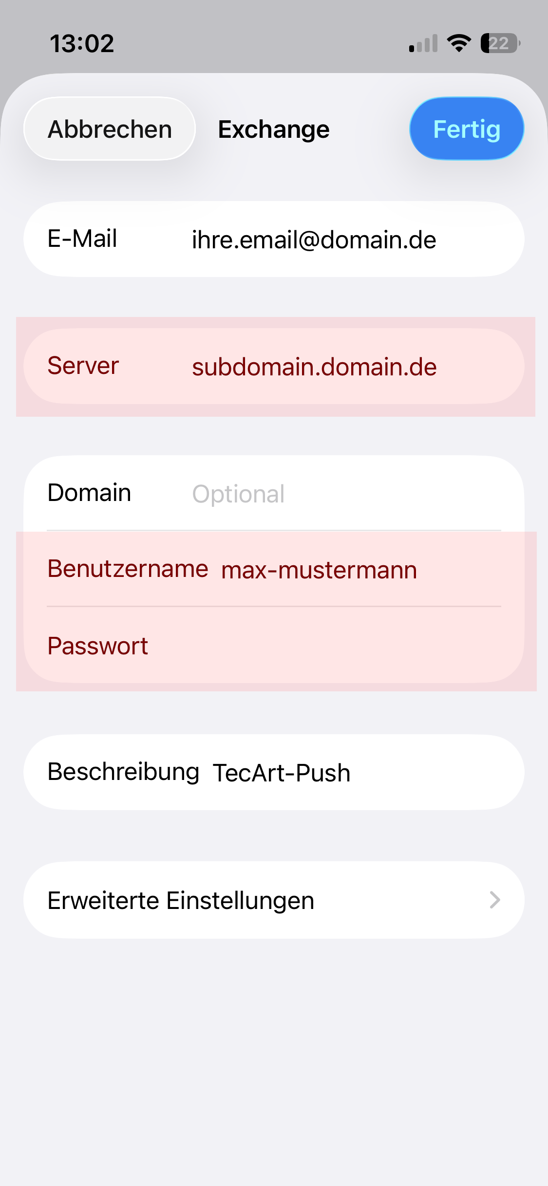 Bitte beachten Sie bei der Einrichtung der TecArt-Push-Konten die Groß- und Kleinschreibung des Benutzernamens.